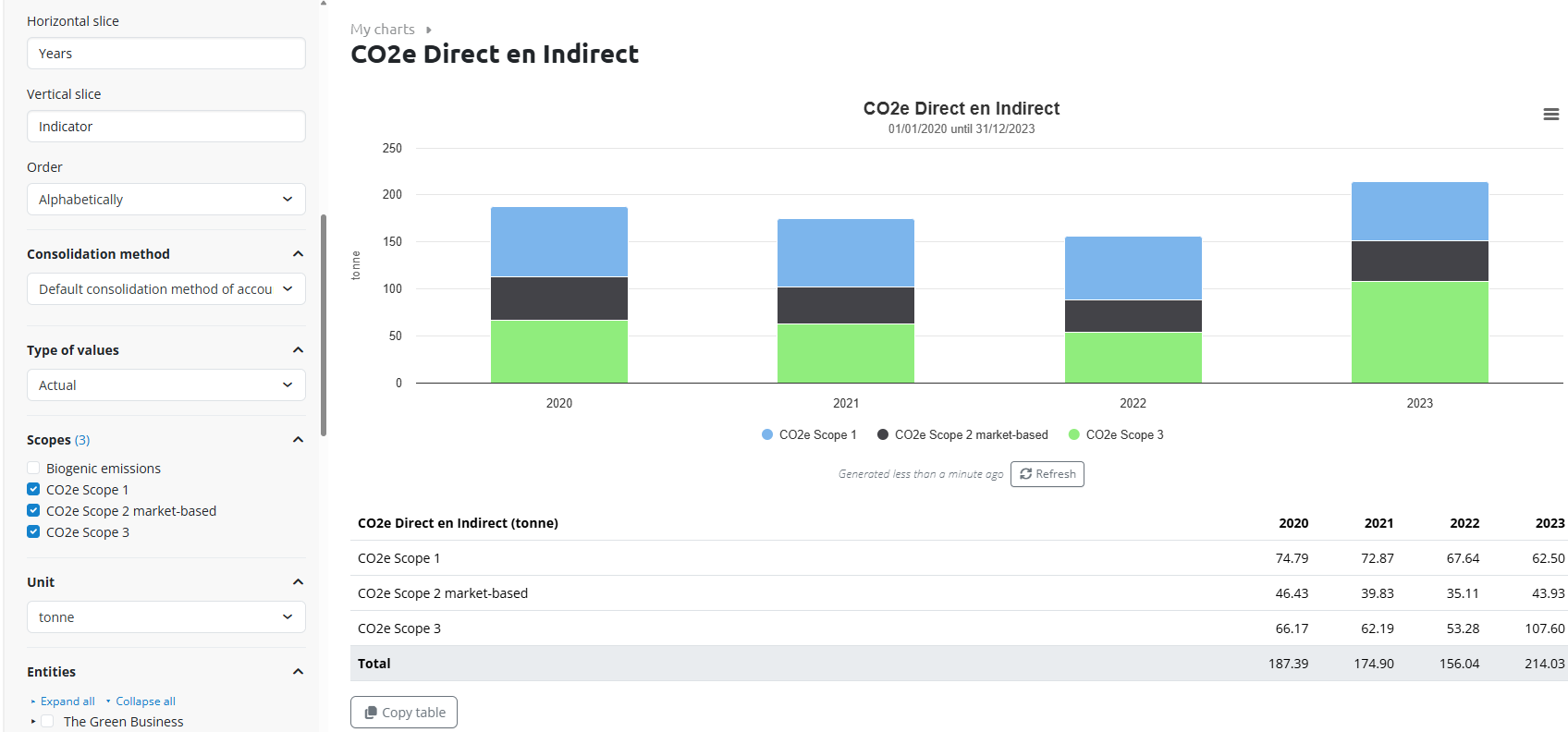 Starting in November 2025, a new type of indicator is available that allows you to filter by scope in CO₂ charts.
